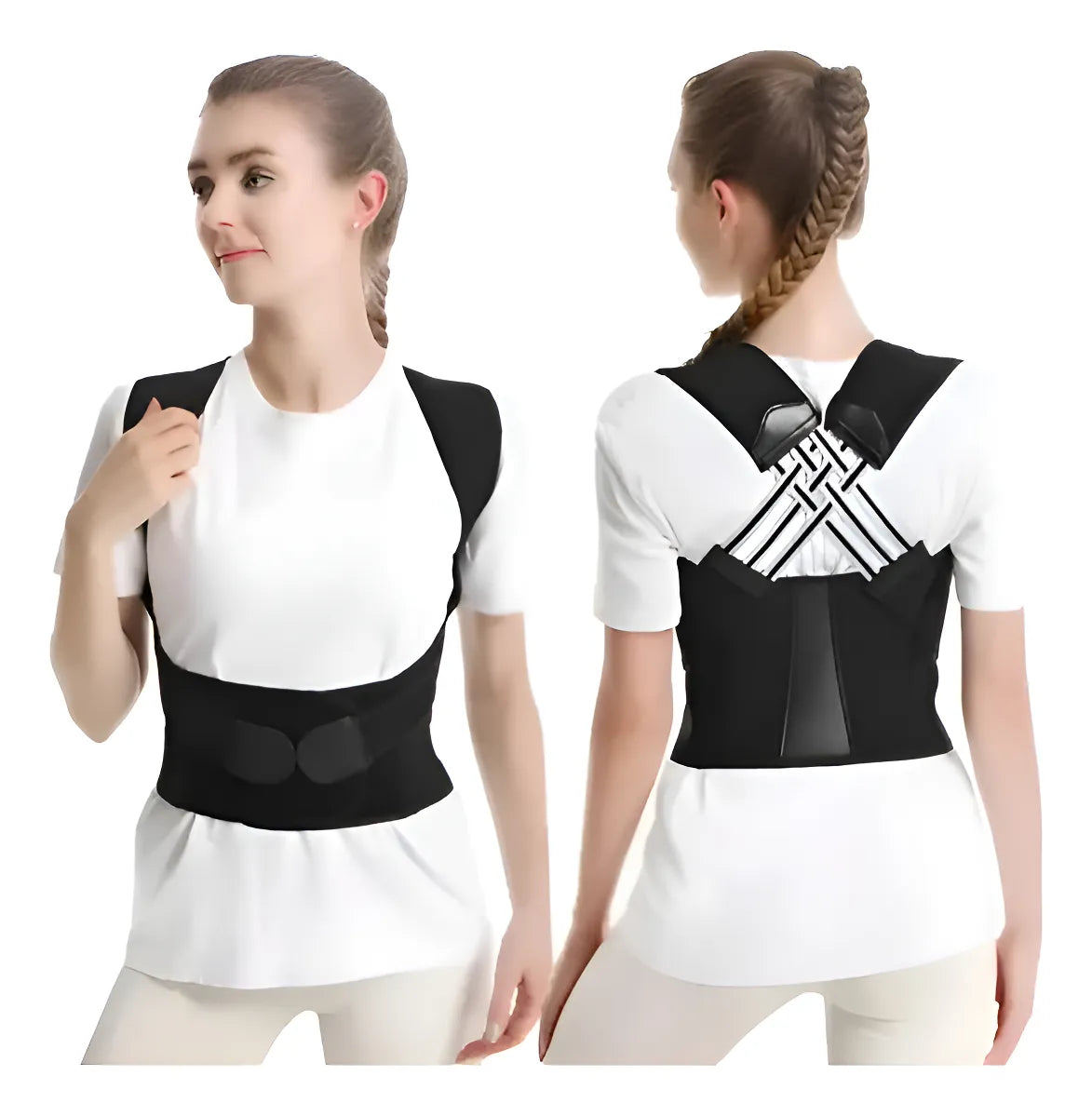 El Corrector de Postura Ajustable reposiciona tus hombros y alinea tu columna suavemente, entrenando tu cuerpo a mantener la postura correcta sin esfuerzo.